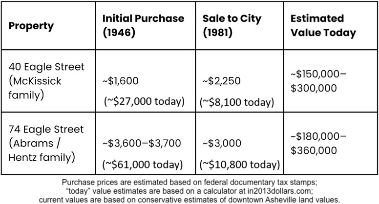 Across Asheville, these conditions became the basis for clearance efforts that would reshape entire neighborhoods. The details of ownership differ from parcel to parcel. But the outcome is the same: a residential landscape—shaped in part by Black homeownership—was cleared, and the land was repurposed without meaningful participation from the people most connected to it.